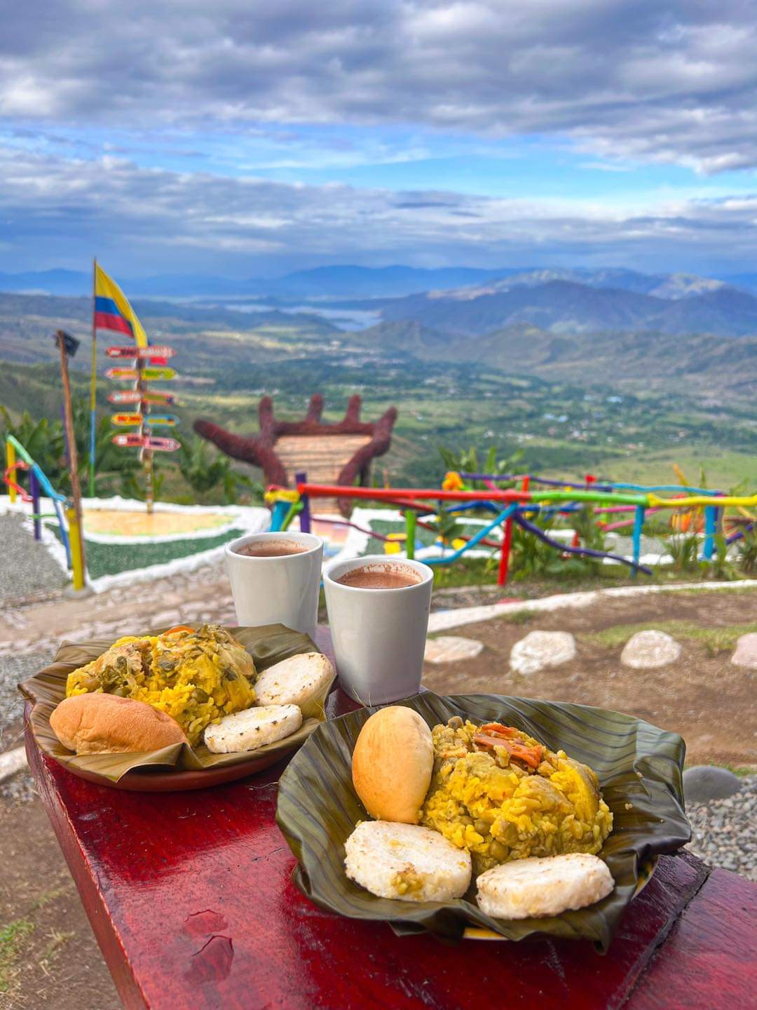Con chocolate , pan y arepa.